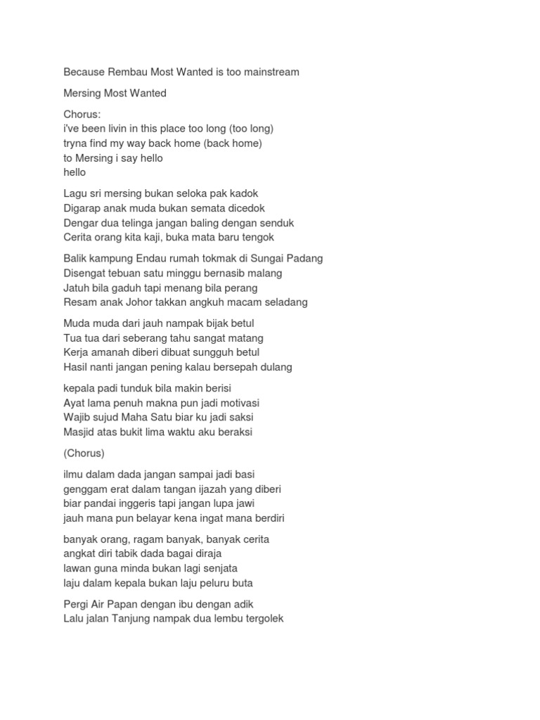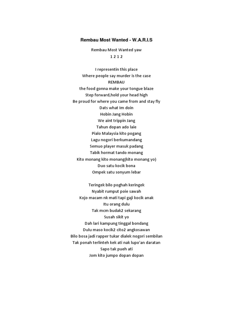 Lirik Rembau Most Wanted Part Ii W A R I S Lirik Lagu Malaysia